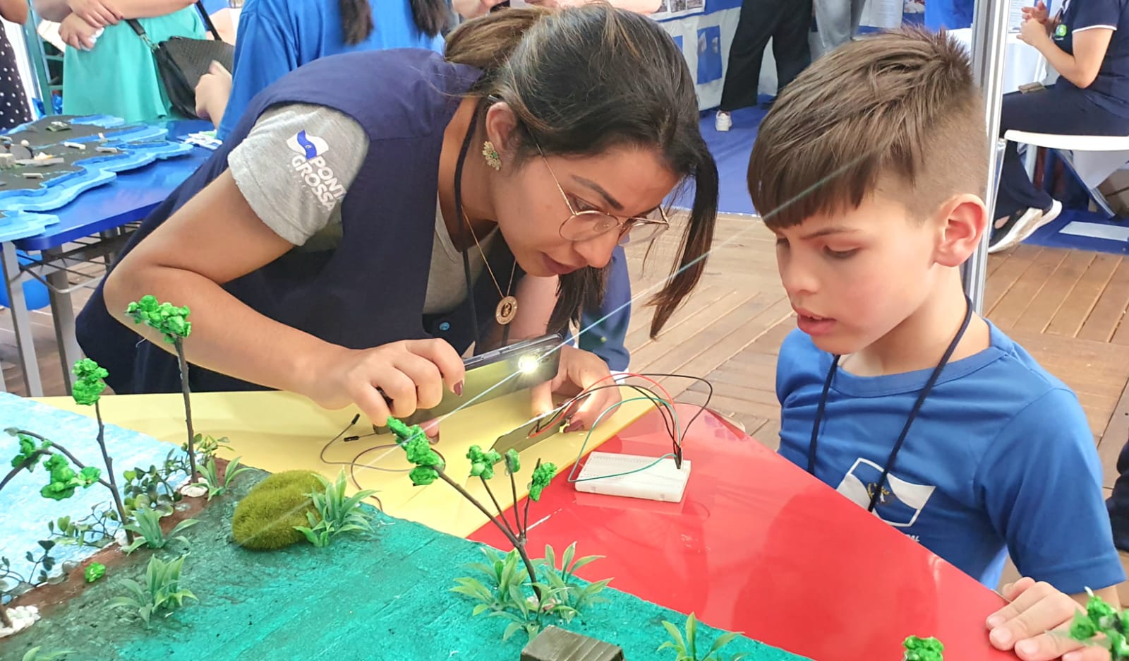 Entre os estandes, um dos destaques está nos trabalhos dos Laboratórios de Aprendizagem Criativa (LAC), já instalados em 15 escolas – serão 50 até 2024, proposta da Secretaria Municipal de Educação em consonância com o programa Vale dos Trilhos. Todos os dias, as escolas participantes fazem um rodízio para mostrar ao público a criação e os resultados dos estudos dos alunos, que envolvem a robótica educacional, uso do arduíno, atividades maker, dentro do conceito de aprendizagem criativa.