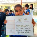 Assim como as abelhas, foi a vez dos alunos buscarem o néctar do conhecimento e polinizar seus novos estudos. Pesquisando sobre o inseto trabalhador, as crianças já reuniram informações para cartazes, textos, ilustrações e apresentações. Caroline e sua turma, do 3o ano, fizeram um mural sobre as abelhas. “É um mural de curiosidades. Uma delas é que as abelhas mandaçaia constroem seus ninhos em um tronco, onde armazenam muitos litros de mel”, conta ela.
