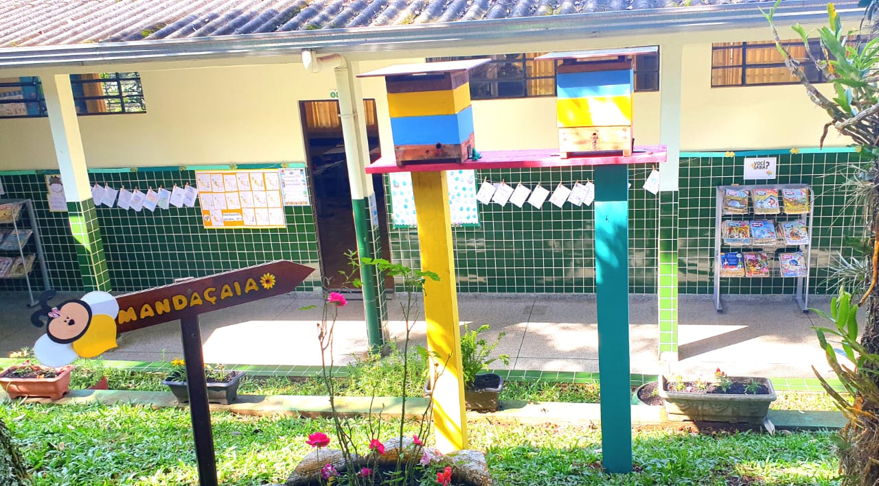 A escola instalou três colmeias, duas para abelhas da espécie jataí e outra para abelhas da espécie mandaçaia. Além de serem inofensivas, elas ajudam o ser humano produzindo o mel, dispersando o pólen e favorecendo a produção de frutos por todos os lugares. “É comprovado que as abelhas possuem papel fundamental para os produtos consumidos na alimentação humana. Se elas não existirem, a produção vai ser menor. Onde tem abelhas tem um ecossistema saudável”, comenta a diretora da unidade, Eliane Gualberto Carvalho.