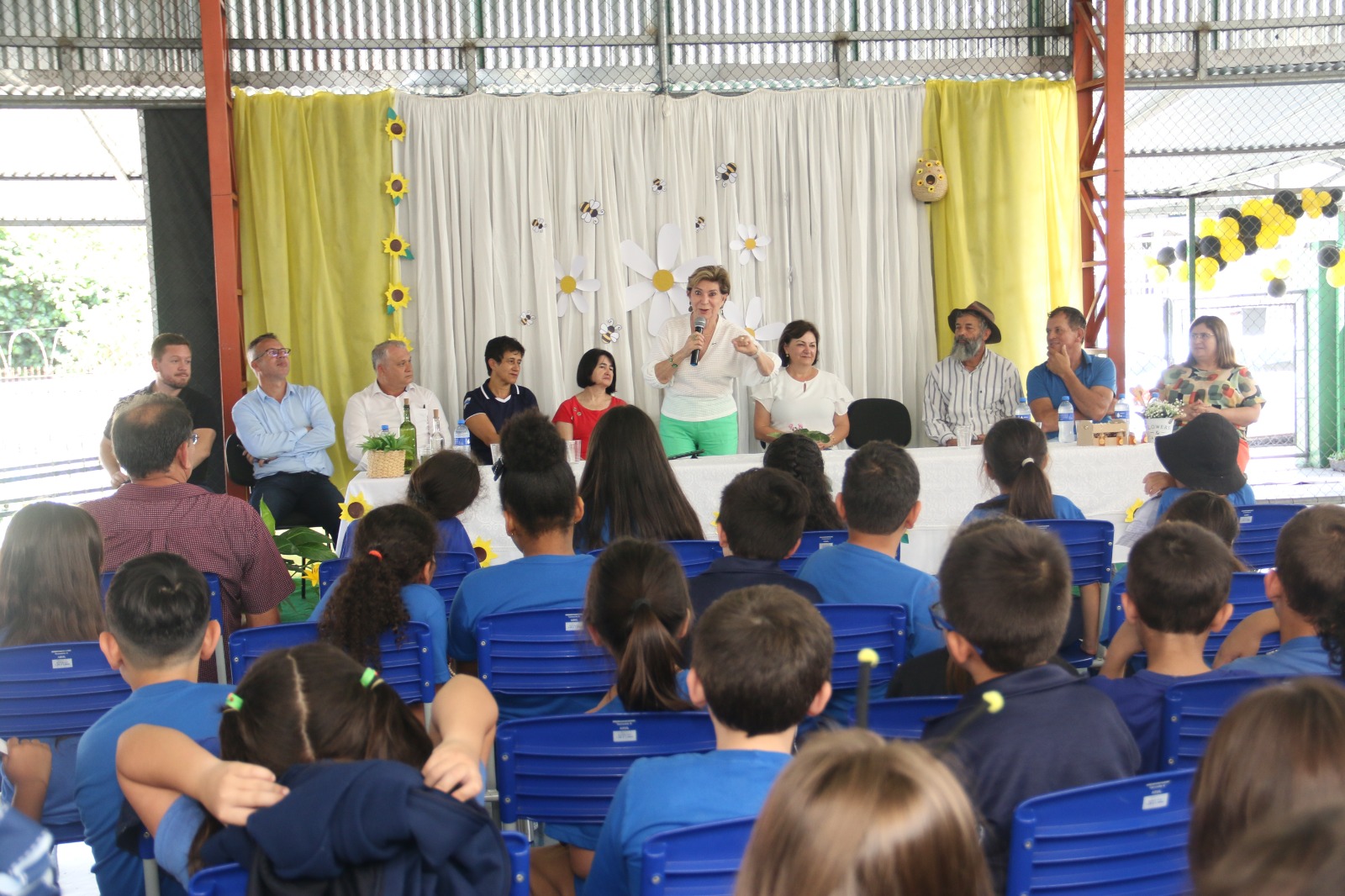A prefeita Elizabeth Schmidt lembrou que a escola já é “um exemplo de sustentabilidade”. “As crianças estão aprendendo e ensinando a todos a importância de termos as abelhas, o mel, a geleia real, que serão produzidos aqui, pelas abelhas sem ferrão. Pois desejo que a vida delas seja cada vez mais doce e que os pais sejam cada vez mais orgulhosos dos profissionais que atendem seus filhos, porque este é o nosso objetivo: conhecimento, conhecimento e conhecimento, para que eles tenham um grande futuro”.