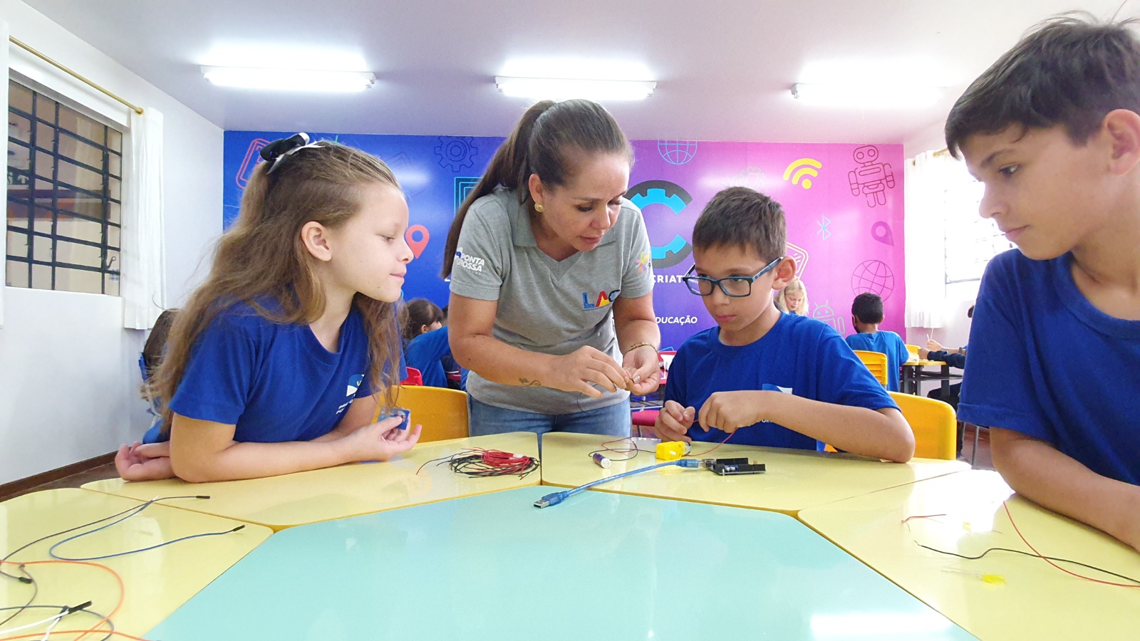 A robótica educacional contempla o uso de materiais em cartão, insumos eletromecânicos e eletrônicos, arduínos, leds, interruptores e outros, utilizados conforme a idade escolar. “Em todos os momentos, os alunos terão uma visão da Computação na Educação Básica, tendo em vista a alfabetização e letramento tecnológico”, explica Dirce Vaselechen, que atua na coordenação do LAC.