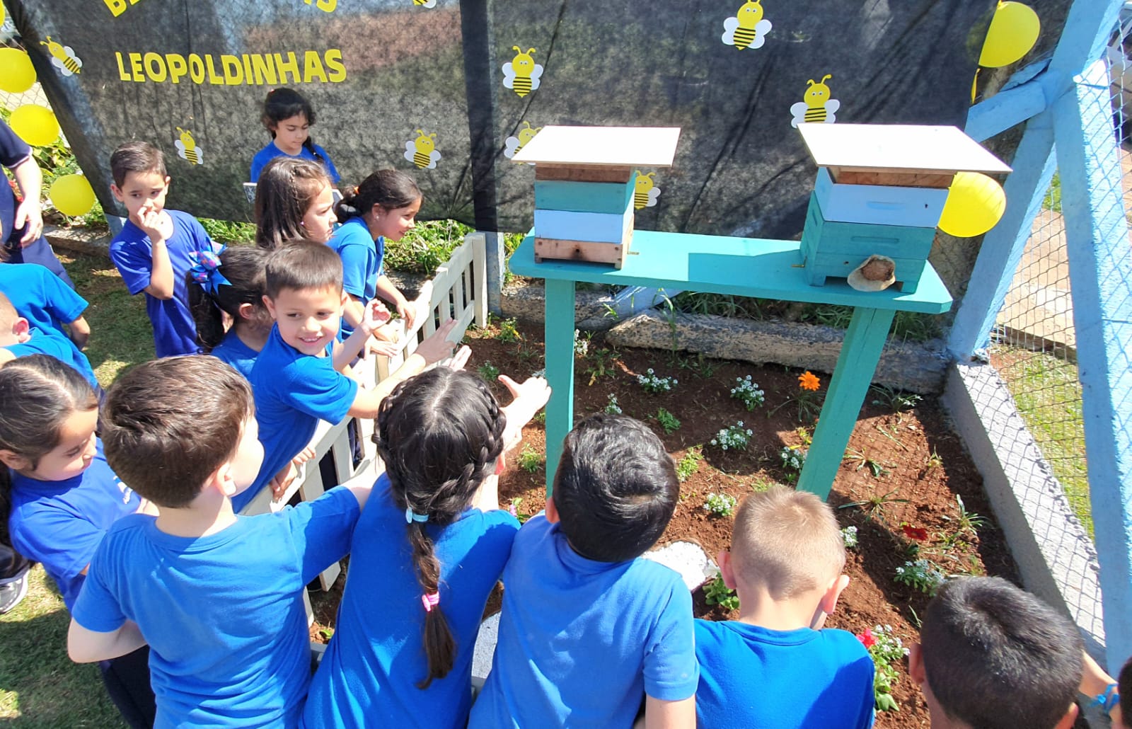 Nesta semana foi a vez do CMEI Leopoldo Lopes Sobrinho, no Parque Tarobá, receber duas colmeias da espécie Mandaçaia e lançar o projeto ‘Leopoldinhas sem ferrão: preservando nossas polinizadoras’. As caixas foram instaladas com destaque para que possam fazer companhia no dia a dia dos 85 estudantes da creche e pré-escola e de seus familiares.