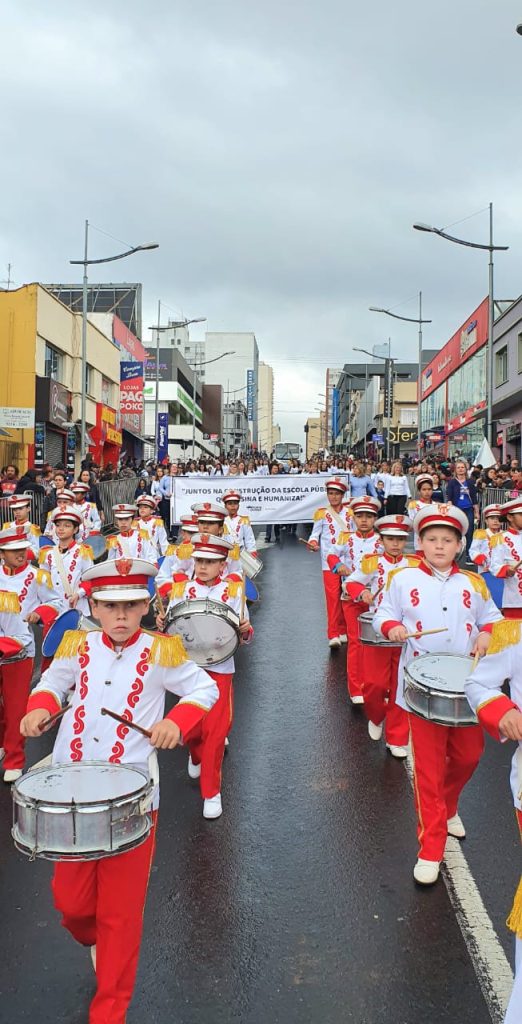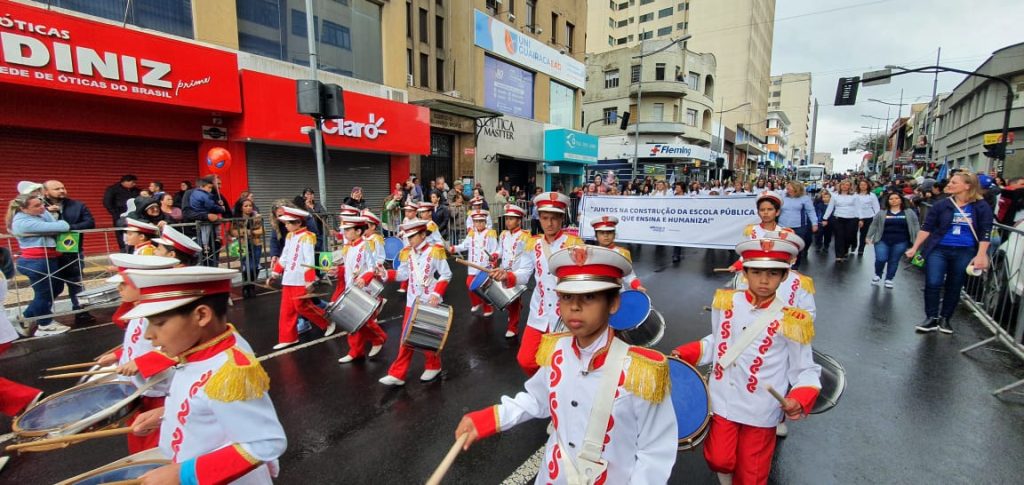 Aproximadamente 2,5 mil pessoas de 15 instituições desfilaram pela Rua Balduíno Taques e Avenida Vicente Machado, entre Exército, policiais, veteranos, guardas municipais, bombeiros e outros representantes das forças de segurança, além de fanfarras de escolas públicas e particulares, profissionais da Secretaria Municipal de Educação e outras instituições.